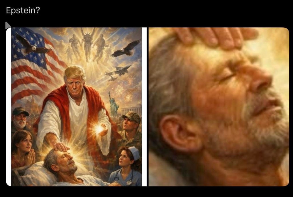 This was the orange turd’s reasoning behind the Jesus depiction: