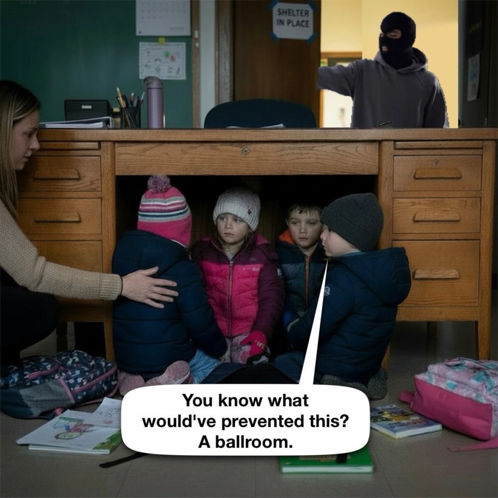 Trump’s argument, reinvigorated since Saturday and immediately sock-puppeted by all manner of right-wing influencers, is two-fold: First, the president needs a secure facility — unlike the Washington Hilton! — where the president can host grand gatherings, and, second, that the (re)construction of now-destroyed East Wing will enable the creation of a giant secure presidential bunker.