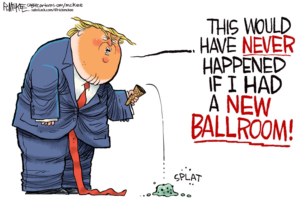As with everything else we excerpt here, this article has a lot more content and is worth reading. Paul Waldman, writing at Public Notice, has this analysis. “A more secure ballroom will not stop the madness. This is the age of chaos Trump has made.”