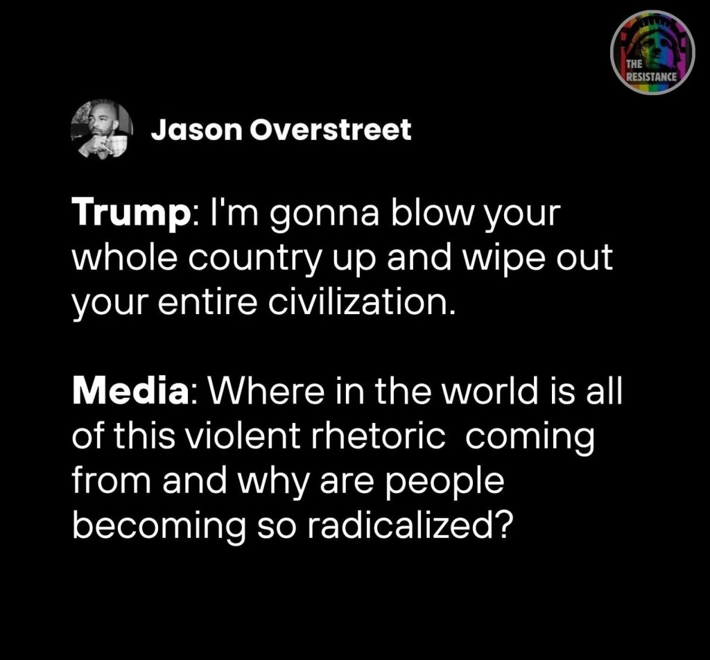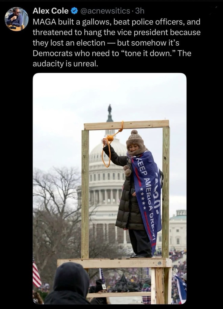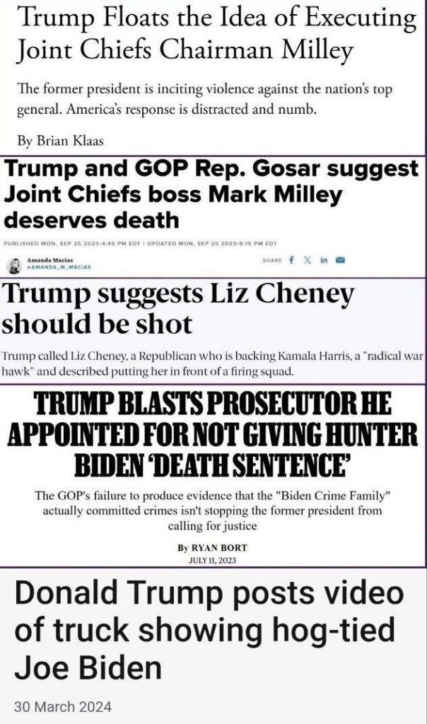 Just to remind you what Orange Caligula really thinks about reporters and such, here’s a headline from Politico. This is reported by Eli Stokols. “Trump lashes out at ‘60 Minutes’ anchor for reading alleged gunman’s manifesto. Any detente between the president and the press after the shared horror of Saturday’s dinner appears to be short-lived.”