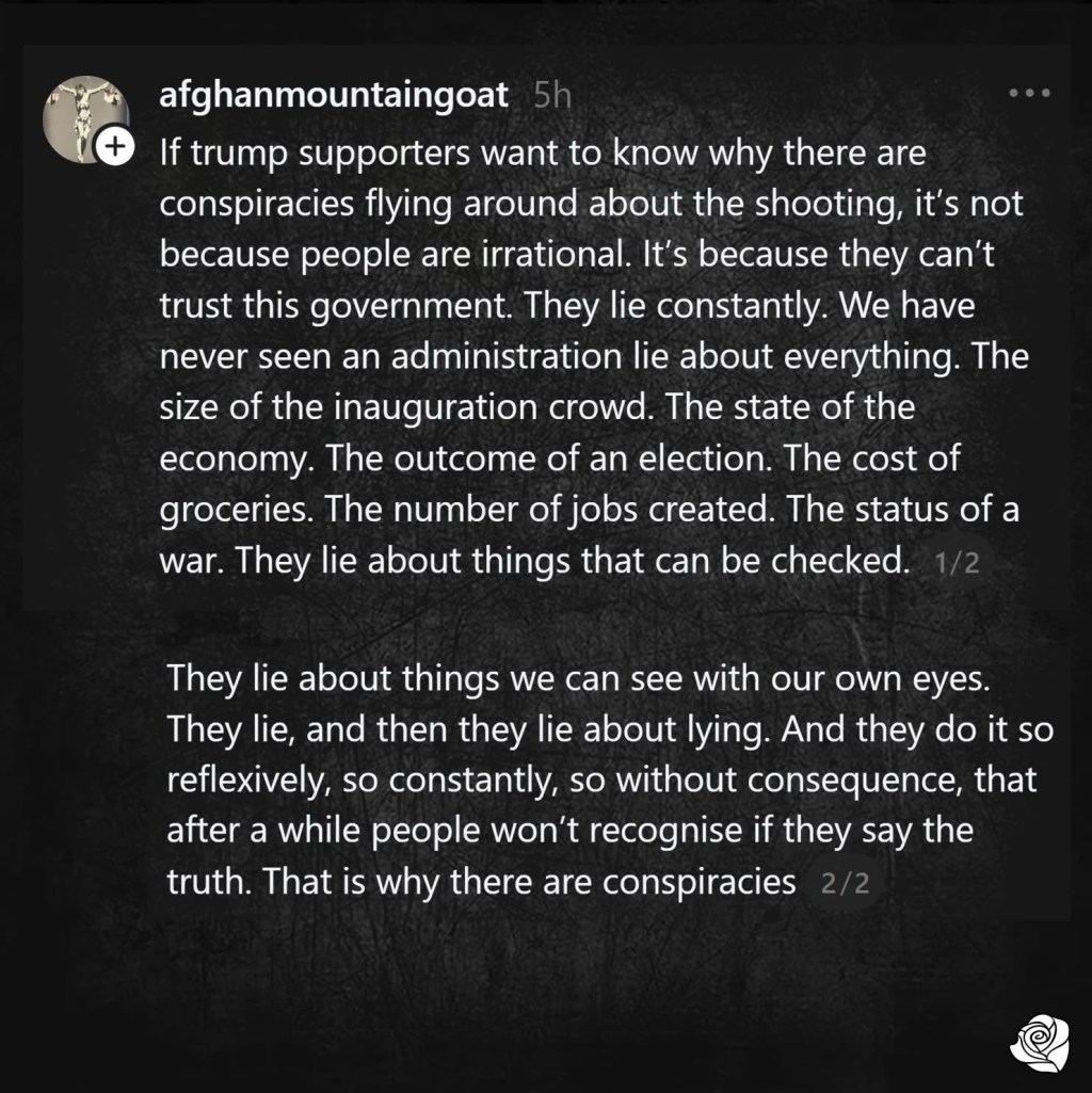 Trump’s failure to release Epstein files was probably the inflection point. But more recently, the conspiratorial thinking about Trump has metastasized.