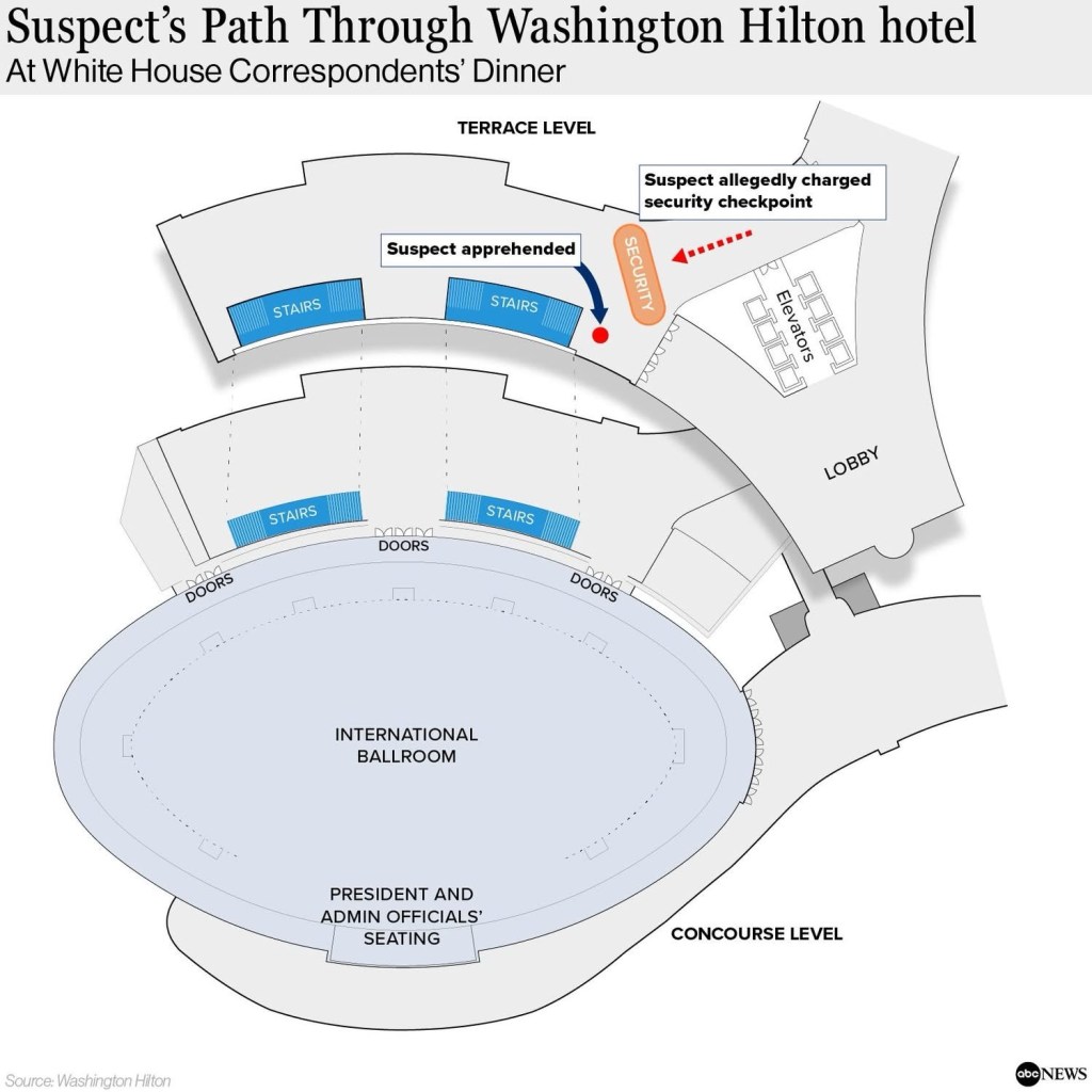 President Donald Trump and Vice President JD Vance were quickly evacuated to safety Saturday when a gunman charged the security perimeter and attempted to storm the ballroom at the Washington Hilton Hotel. Others in attendance included Speaker of the House Mike Johnson, Secretary of State Marco Rubio, Treasury Secretary Scott Bessent and Defense Secretary Pete Hegseth.