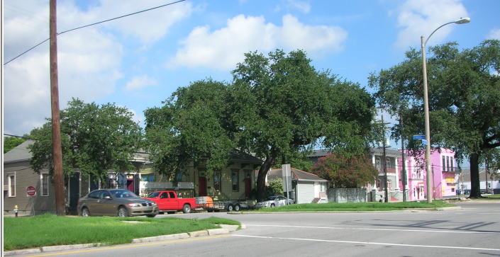 This is the 1000 block of Elysian Fields. The Acorn building is next to the two pink buildings at the very end. It’s address is 1024 EF.