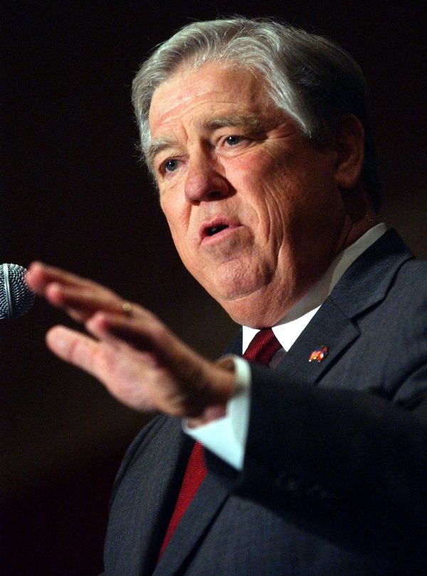 Gov.-elect Haley Barbour tells lawmakers at the legislators’ luncheon about his hope to improve the state’s financial and growth during his tenure in office, Monday, Jan. 12, 2004 in Jackson, Miss. This luncheon is one of many events that is leading up to his inauguration Tuesday as Mississippi’s 63rd governor. (AP Photo/Rogelio Solis)
