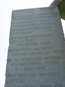 The article concludes with a reference to the Georgia Guidestones, pictured at the top of this post, and at left.