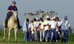 I noticed that all the prisoners in your photo are black. It’s the new Jim Crow as well as the new slavery.