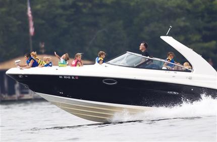 Republican presidential candidate, former Massachusetts Gov. Mitt Romney, takes his family for a boat ride on Lake Winnipesaukee on Saturday, July 14, 2012 in Wolfeboro, N.H. (AP Photo/Evan Vucci)
