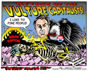 Taibbi does a great job detailing exactly how Romney’s own brand of Vulture Capitalism really is what’s wrong with our economy and our politics right now. This brings me to the two things that I’m going to watch this week from the DNC. The first is Big Dawg’s speech. I think this should be a barn burner. The next thing is the speeches by employees of companies bought by Bain.