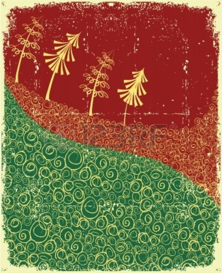 11102366-winter-snow-landscape-on-old-paper-texture-vintage-card