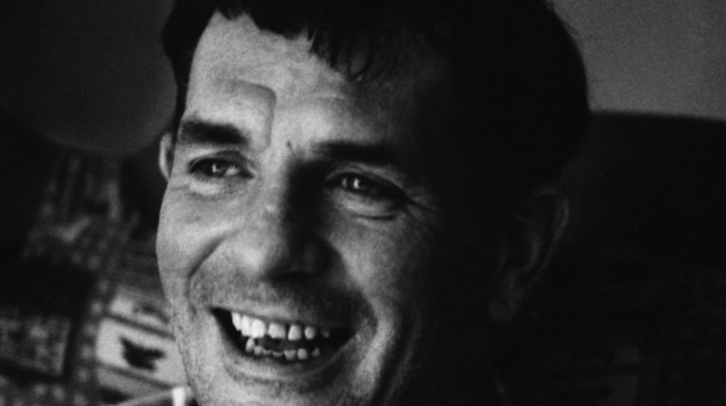 Author Jack Kerouac laughs during a 1967 visit to the home of a friend in Lowell, Mass. (AP Photo/Stanley Twardowicz)