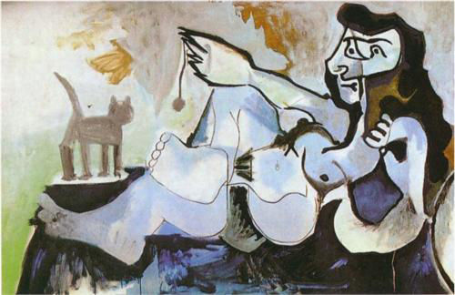 Pablo-Picasso-Reclining-female-nude-playing-with-cat-1964