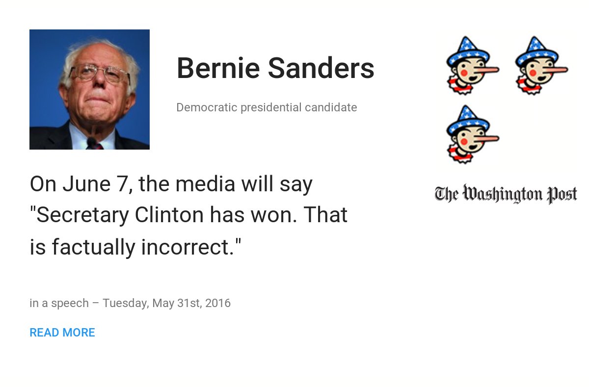 Posted: June 5, 2016 Filed under: 2016 elections | Tags: Bernie Sanders, Dead Enders for Bernie, Donald Trump, Hillary Clinton, Pride, Racism, Sexism 73 CommentsGood Afternoon!