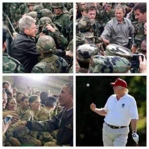 Three of these pictures have real Presidents doing real presidentin’ things from the last 20 years. Then, there is the current president* enriching his businesses on the taxpayer’s dollars and basically doing nothing. At least he’s not giving a speech or twittering from the golden piss pot.