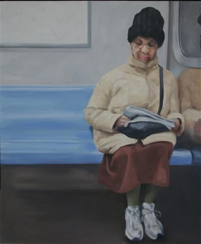 Lady Reading Newspaper – R Train, Street by Michele Riche