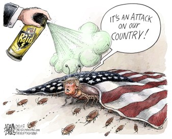 Trump is that grade school bully at recess with a toadish smirk on his face, throwing clods at the other kids while making loud flatulent ka-bomb noises.