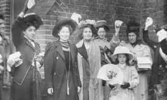 British suffragettes Emmeline Pankhurst celebrating with Christabel Pankhurst and others after being released from prison. Photograph: Hulton Getty