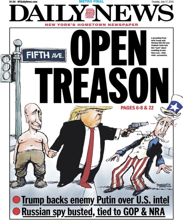Yesterday was a day that will certainly go down in history. We saw an American “president” stand next to the Russian dictator and completely surrender our country’s values. And this followed on a disastrous trip in which the “president” horribly damaged our relations with our traditional European allies. Reactions: