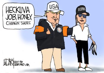 My latest pool question: What outrageously inappropriate thing will Melania wear when visiting California fire survivors?