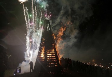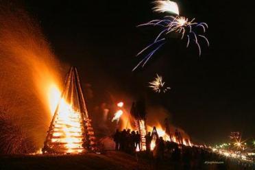 It’s Bonfire Night in the River Parishes! The fires are lit to guide Père Noël to the homes of Cajun children in the southern swamps of the state. Towers and all kinds of things made of timber are lit up and down the Mississippi River levees in St John the Baptist and St James’ Parishes.