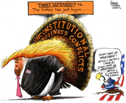 Headline after headline is just about one scam or constitutional crisis or foreign policy crisis or economic harbinger of doom after another. It’s like the entire newsfeed is filled with “Man bites Dog” headlines and the mad dog is Trump biting our entire country. Did you ever think you would see such criminal behavior so flagrantly flaunted in public? It’s not just criminal though, and it’s just not aimed at taking the country to third world status, it’s about handing what power we have over to international thug countries!