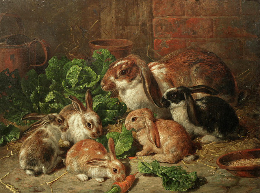 A Family of Rabbits (Oil on Canvas), by Alfred Richardson Barber