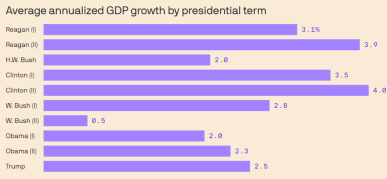 Between the lines: Economists dispute how much credit presidents can take for a booming or sagging economy under their watch. There are factors that can boost or reduce growth outside of their policies.
