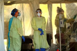 The state opened a nine-lane COVID-19 drive-thru testing center in Lawrence last week.JOHN TLUMACKI/GLOBE STAFF