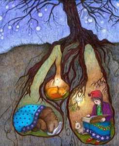 Amaryllis and Cats, by Elizabeth Blackadder