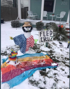 “The rendering featured a manipulated photo of Cruz from his well-documented trip to Mexico, dragging his luggage across an arctic landscape while holding a tropical cocktail garnished with a slice of fruit in his other hand,” Lee and Caldwell wrote.