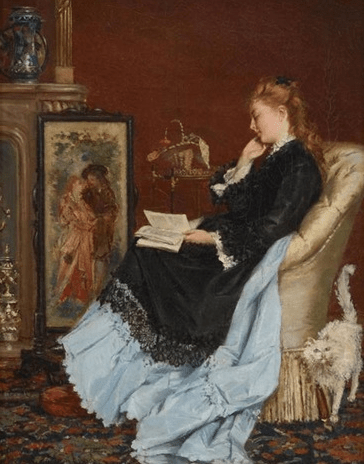 Lady reading with cat-Albert Roosenboom