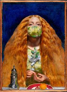 John Everett Millais’ “The Bridesmaid” (1851) with a decorated facemask to match her decorative dress. Credit: The Fitzwilliam Museum/FME, Cambridge