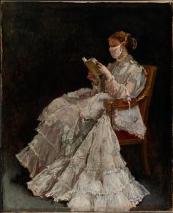 “La Liseuse” (The Reader) by Belgian painter Alfred Émile Léopold Stevens in 1860, as imagined in the pandemic. Credit: The Fitzwilliam Museum/FME, Cambridge