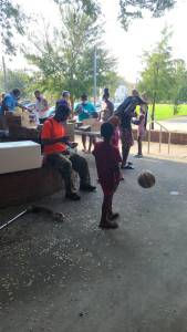 The city, state, and FEMA were all present throughout the neighborhood rec centers with cooling and charging stations, hot meals, and supplies. This has been my morning retreat for days. September 7 with neighbors at the Stallings Center. FEMA is there helping with registrations.