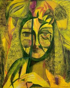 Paula Modersohn-Becker, Self Portrait Before a Green Background with Blue Iris