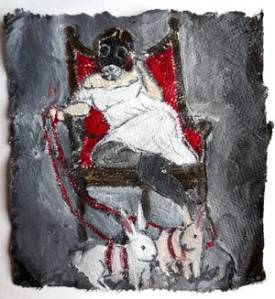 Kat’s paintings, including these done on toilet paper which has been available for $20