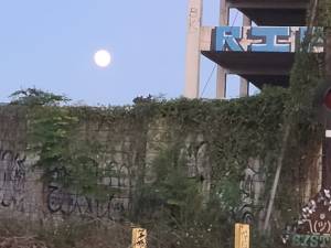 Abandoned Navy Base New Orleans Bywater Waxing Gibbous moon, October 20, 2021, Kathryn Huff