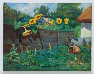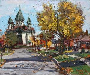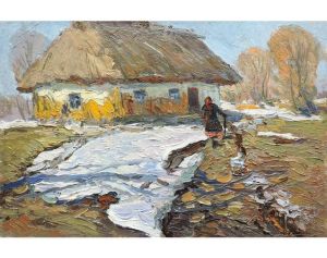 Ukrainian Landscape with Huts by Vladimir Makovsky