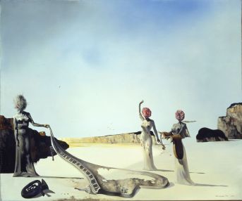 Three Young Surrealist Women Holding in Their Arms the Skins of an Orchestra, Salvador Dalí, 1936