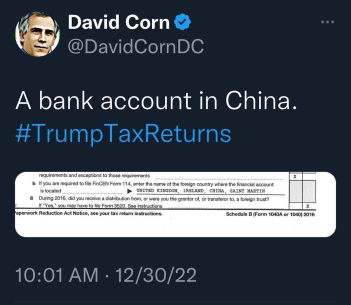 Thanks! Do you remember when Trump was debating with Biden, he told one of the reporters who asked that he’d closed his China bank account when he ran for president? I wonder how big a deal folk will make of that.