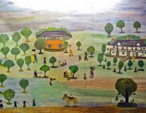 Clementine Hunter Mural. In 1955, at the age of 68, Hunter painted the top floor of the African House (an outbuilding of Melrose Plantation) during a three-month period. The painting consisted of nine large panels and several small connecting panels which encircled the room and depicted the story of the Cane River country.
