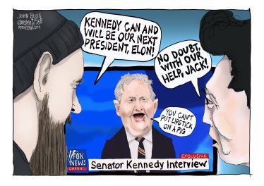 It’s hard to say one is reading too much into a coat that’s so explicit—and anyways, as The New York Timesnoted in a fawning profile, Casey DeSantis is definitely trying to make a political statement with what she wears, with her aspirations of “Camelot-meets-Mar-a-Lago.” But while Casey may be trying to position herself after Jackie Kennedy (good luck) and even Melania, if this weekend is any indication, she’s falling far short. It doesn’t matter how many times she wears that ice-blue Badgley Mischka cape-dress. The DeSantis’ will never be Camelot. Jackie and JFK symbolized the opposite of vulgar pettiness—they embodied youth, energy, a commitment to moral progress in the struggle for Civil Rights, a country fresh with idealism. Not an America that was obsessed with banning books about male seahorses and rainbows, or nuking the latest Disney movie.