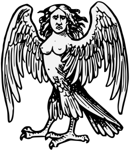 Harpy. A hybrid monster formed of a vulture with the head (and sometimes the torso) of a woman.