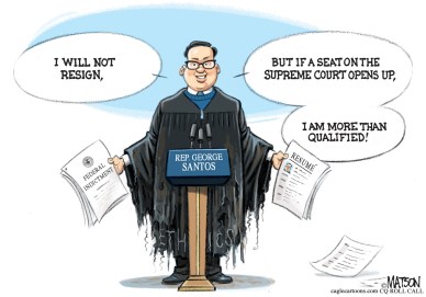 Georgie Porgie just sounds like the nicest guy. This is from HuffPost. “George Santos Accused Of Stealing House Member’s Personal Credit Card Info. GOP Rep. Max Miller of Ohio made the allegation not long before Santos was expelled from Congress.”