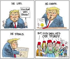Can the courts, the political process, and the media defang this enemy of democracy? And how? Thankfully, political cartooning already acts asymmetrically.