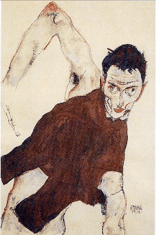 Egon Schiele, Self Portrait In Jerkin With Right Elbow Raised, 1914