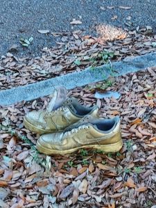 Hey, look what I found on the side of the street while walking Temple. You’d think gold spray paint and a Sharpie signature would last longer!