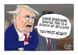 A firebrand politician named Donald is about to stand trial. Just a few days before jury selection, he goes on TV to slam the charges as baseless and biased.