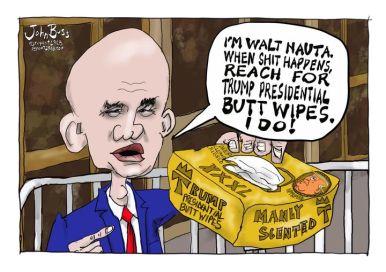 Just when I think that Donald’s supporters can’t be any more idiotic, the groupthink leads them to some next-level crazy. Their latest efforts are wearing adult diapers outside their jeans and touting the masculinity of diaper-wearing by adult men. Seriously, who thought this up? Well, here’s one explanation by FirstPost explainers. “Oh, S**t! Why are Trump’s supporters wearing nappies to rallies?”