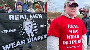 Just when you think US presidential elections can’t get more bizarre, they throw up a surprise. Donald Trump’s supporters do not disappoint. They are showing up at his rallies wearing nappies and shirts that read “Real Man Wear Diapers”.