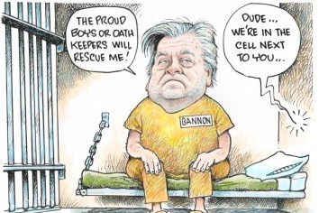 These are days when you have to hold on to every instance where Justice and the Rule of Law stand firm. The small victories come when an insurrectionist gets jail time. Today, we learned that Steve Bannon is headed to Jail. Peter Navarro started his sentence in March.”Ex-Trump aide Peter Navarro begins serving prison sentence after historic contempt prosecution.” This event was reported by CNN. (Note: BB reminded me that one of the last things Donald did in office was to pardon Bannon for fundraising for a border wall that never happened.)
